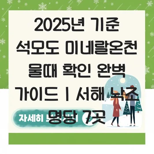 이번 가이드의 핵심인 석모도 미네랄온천 물때 확인 전략을 활용해 보세요. 그냥 '온천'이 아닌 '경험'을 최적화하는 여정은 당신의 삶의 질을 한 단계 높여줄 것입니다. 2025년 기준 최신 정보를 바탕으로 효율적인 석모도 여행 계획을 세워보시기 바랍니다.