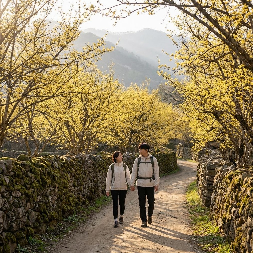 산수유 군락지 속에서 인생샷을 남기고 싶다면, 최적의 동선을 파악하는 것이 중요합니다. 상위마을, 하위마을, 그리고 숨겨진 돌담길까지, 놓쳐서는 안 될 핵심 코스를 완벽하게 안내합니다.