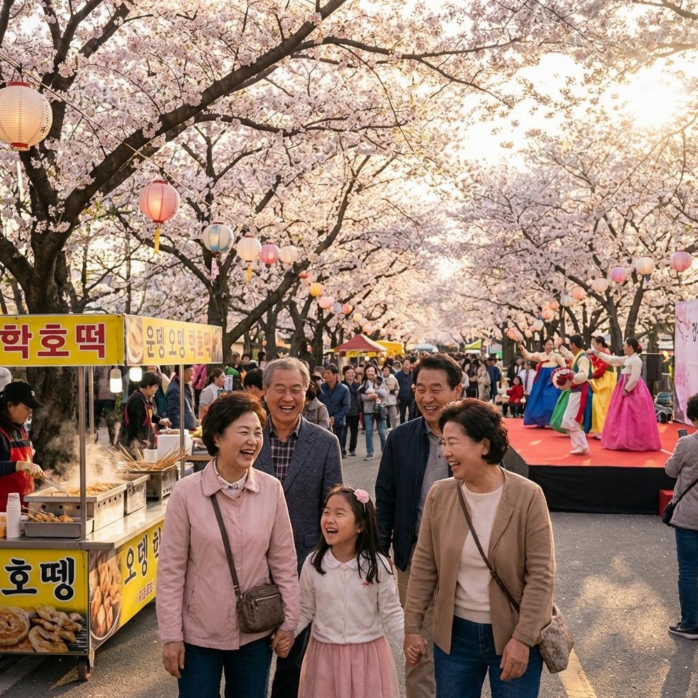 주요 프로그램으로는 어린이 사생대회, 전통 놀이 체험, 벚꽃 테마 푸드트럭 존, 그리고 저녁 시간의 벚꽃 야경을 배경으로 한 음악회 등이 있습니다. 야간 개장 시에는 벚꽃 조명 쇼가 펼쳐져 낮과는 또 다른 환상적인 분위기를 만끽할 수 있습니다.