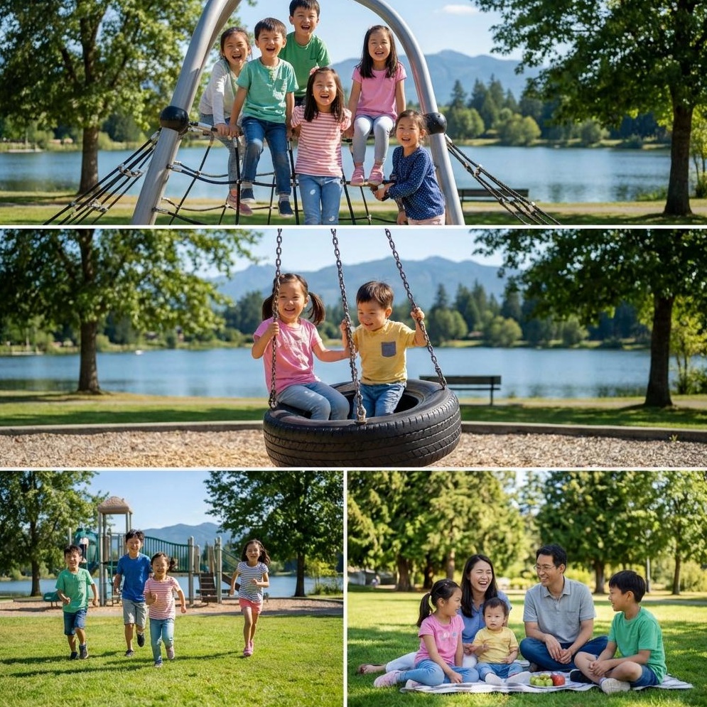 호수 인근에 위치한 어린이 놀이터는 안전 시설이 완비되어 있어 안심하고 아이들을 놀게 할 수 있습니다. 다양한 놀이기구가 아이들의 흥미를 자극합니다. 또한, 작은 숲길에서는 자연 관찰 프로그램을 운영하기도 하니, 방문 전 공원 관리사무소에 문의해 보세요.