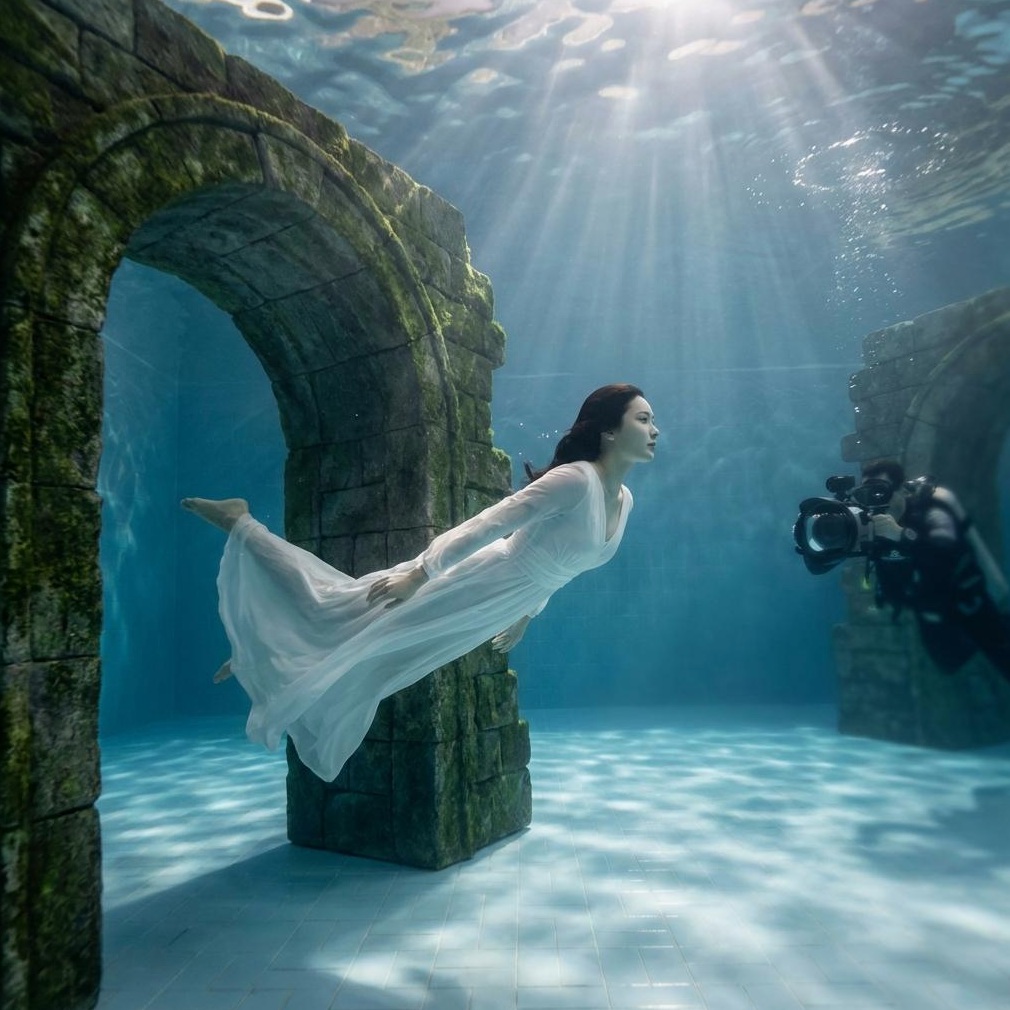 다이빙 풀 내 다양한 컨셉의 수중 포토존과 강사님의 세심한 포즈 코칭으로, 마치 그림 같은 우아하고 신비로운 '인어공주' 인생샷을 남길 수 있습니다. 이색 데이트 코스로도 완벽한 프리미엄 선택입니다.