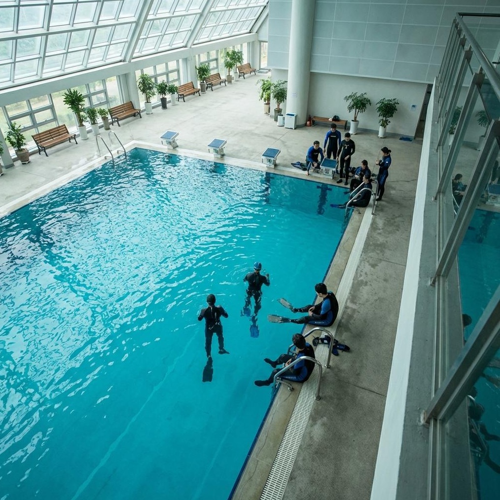 블루피스는 대구 두류 다이빙풀의 최고급 시설을 활용하여 프리미엄 교육 환경을 제공합니다. 수심 5m의 완벽한 풀은 모든 레벨 다이버가 안전하고 쾌적하게 훈련하도록 설계되었습니다.