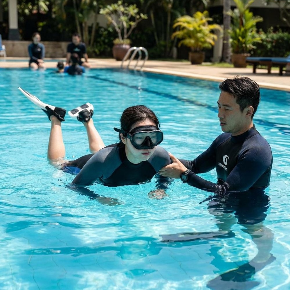 체험 다이빙 시에는 모든 장비가 기본 포함되어 있으며, 추후 정규 교육생에게는 엄선된 장비 선택 가이드와 협력 업체 할인 혜택을 제공하여 합리적인 구매를 지원합니다.