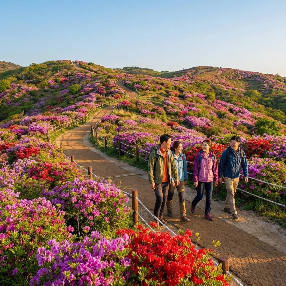 황매산 철쭉 축제 방문객을 위한 다양한 등산 코스를 난이도별(초급, 중급)로 상세히 분석합니다. 각 코스의 소요 시간, 주요 경유지, 경사도, 그리고 필요한 준비물(신발, 물 등)을 명확히 제시합니다. 특히 대중교통 이용자를 위한 접근성 좋은 코스 정보를 포함합니다.