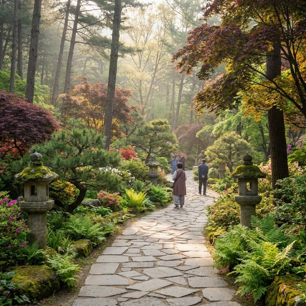 특히 이끼원은 고요하고 신비로운 분위기로 마음을 차분하게 만들어 줍니다. 수백 종의 이끼가 뒤덮인 풍경은 그 자체로 예술이며, 가을 단풍과 어우러져 더욱 몽환적인 모습을 연출합니다. 분재원에서는 정성껏 가꾼 분재 작품들이 한국미를 뽐내고, 단풍나무원은 400여 종의 단풍나무가 절정을 이루어 붉은 물결로 장관을 이룹니다.