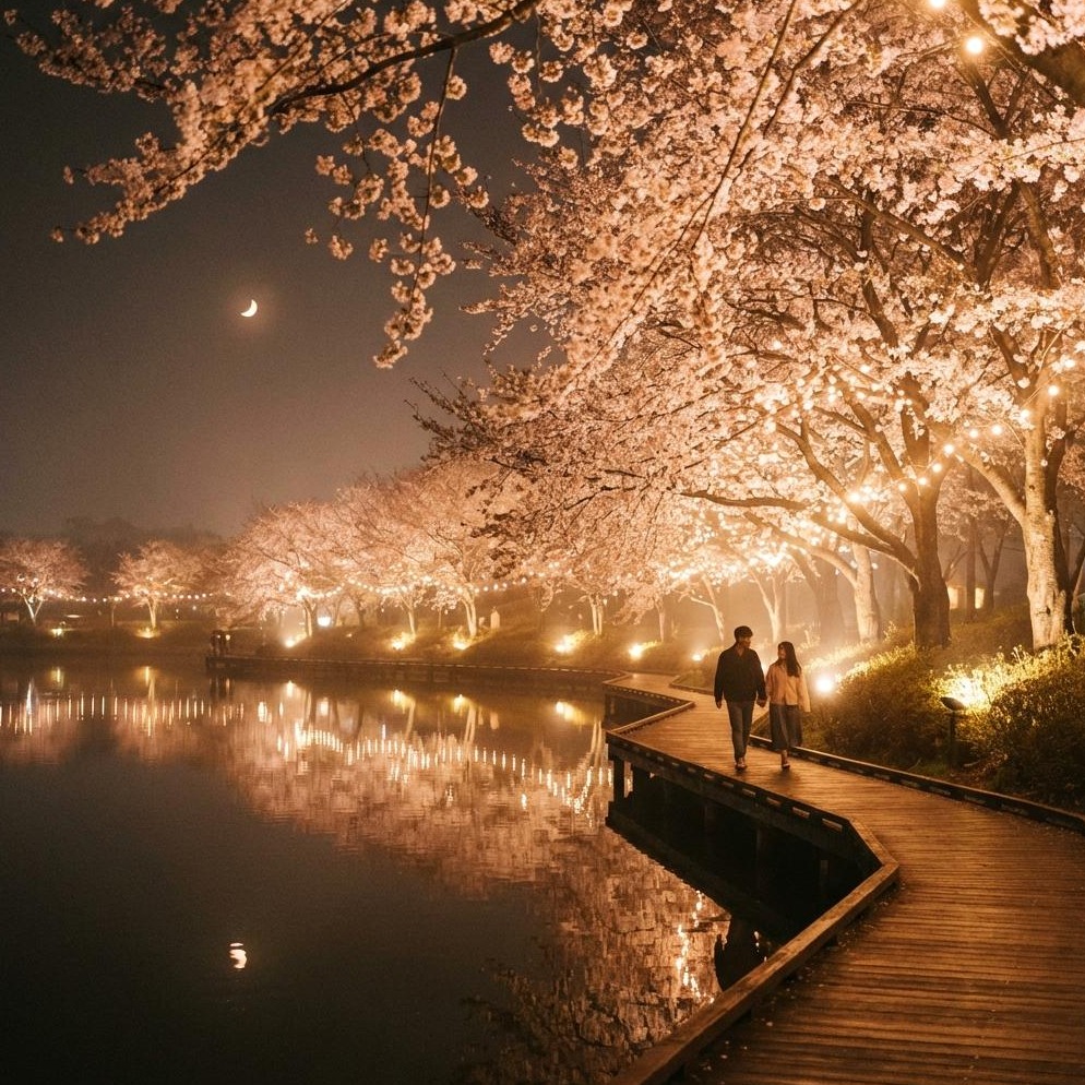 특히, 호수에 비치는 벚꽃 조명은 로맨틱한 분위기를 더해 연인들의 데이트 코스로도 안성맞춤입니다. 밤 산책을 하며 특별한 추억을 만들어 보세요. ✨