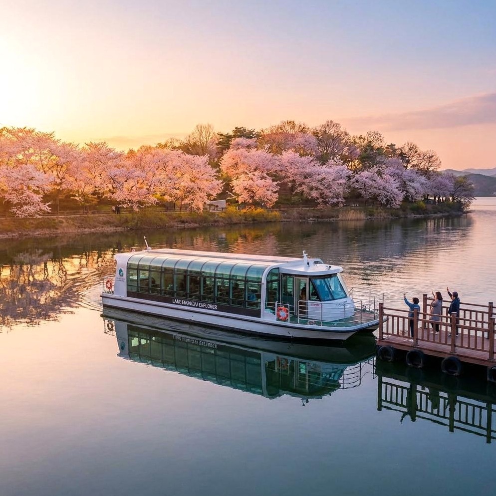 충주댐 벚꽃길의 충주호 벚꽃 유람선 선착장은 단순한 승선 장소가 아닙니다. 벚꽃과 잔잔한 호수가 어우러져, 가족 모두에게 잊지 못할 추억을 선사하는 숨겨진 인생샷 스팟입니다.