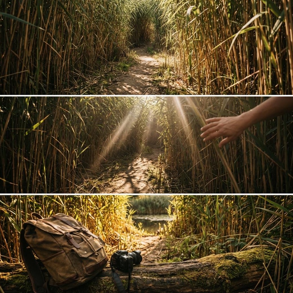 첫 번째는 '갈대숲 속 비밀 터널'입니다. 키를 훌쩍 넘는 갈대가 아치형으로 우거져 마치 동화 속 터널을 걷는 듯한 신비로운 분위기를 연출합니다. 아이들이 특히 좋아하며, 자연스러운 뒷모습 촬영에 좋습니다.