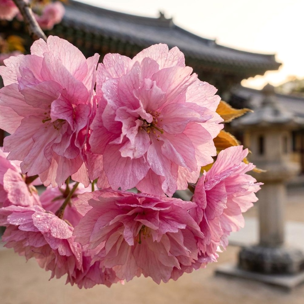 불국사는 일반 벚꽃보다 늦게 피는 겹벚꽃으로 유명합니다. 풍성하고 탐스러운 겹벚꽃은 일반 벚꽃과는 또 다른 화려함을 자랑하며, 벚꽃 시즌의 마지막을 장식합니다. 공식 데이터에 따르면 겹벚꽃은 4월 중순에 만개합니다.